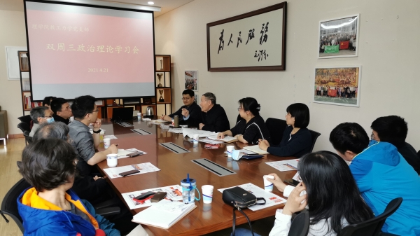 力学系全体教师、退休老党员和学生党员代表一起聆听党课。