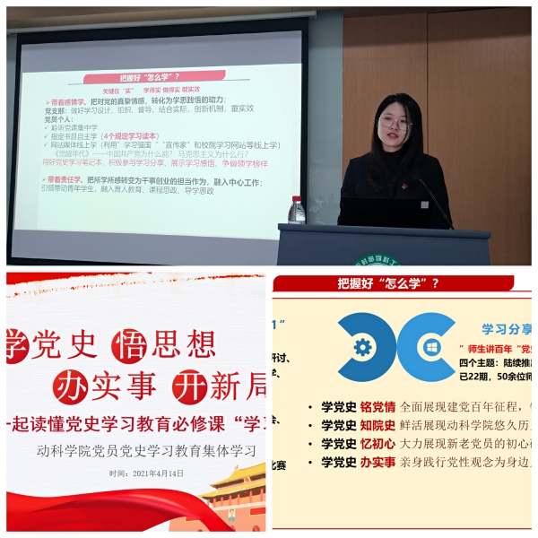 4月14日,动科学院党委召开党员代表大会补选党委委员,同时开展中共一大党史专题学习教育。党委书记郭晓旭、党委委员、副院长邹东云、副院长刘剑锋、王军军及各师生党支部党代表等80余人参加了专题学习。