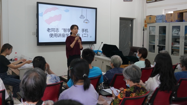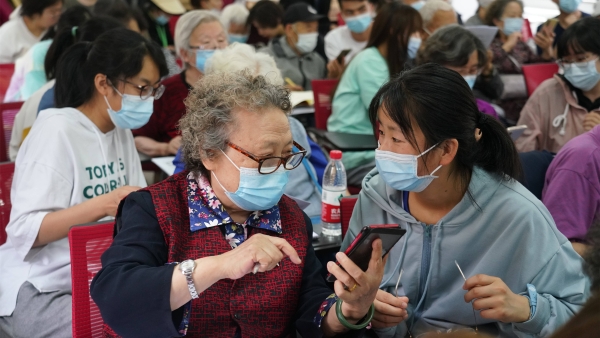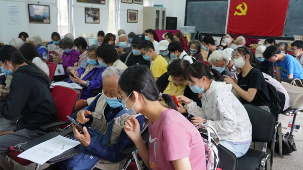 为满足老同志对于智能手机学习的迫切需求,帮助老同志更好的适应数字化时代,畅享生活的便利,5月26日至28日,离退休工作处联合校团委志愿者学生在东校区共同举办第二期“智享生活”智能手机使用讲座及培训。第二期培训延用第一期讲解与实操相结合的方式,连续举办三场,并首次尝试了线下培训与线上直播的形式开展培训。104位老师老同志参加现场培训,129位老同志领取讲义,参加培训的老同志平均年龄78岁,最大年龄89岁。83位学生志愿者参与了讲授和实操指导。