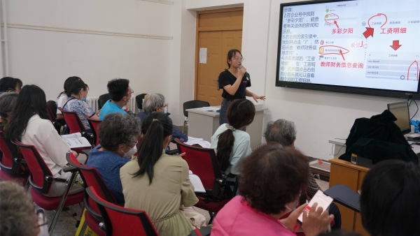 讲座开始前,离退休党委副书记、离退休工作处副处长高鹏简要介绍了第二期培训讲座情况,并对培训的形式改动作了说明。按照老同志第一期培训后反馈的意见建议,第二期培训以小班的形式举办,大大减少了课堂容量,尽量做到一对一手把手教学。老同志学习热情较高,在报名人满之后仍有老同志报名,并表示要多学习几次以便熟练掌握。为此,离退休工作处增加了线上直播的形式,为不能参加现场培训的老同志开辟一条新的学习途径。