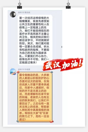 通过线上讨论,大家表示将积极配合学院、学校、党中央的防控工作安排,履行承诺书中的承诺,在防控疫情斗争中砥砺政治品格、彰显使命担当,为打赢疫情防控阻击战贡献自己的力量!