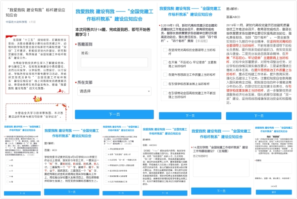 学习问答活动重点聚焦学校2020年度工作会议精神传达与部署、标杆院系总体建设目标与要求、党员角色定位与发展提升等内容,共设计14道题目,让师生党员在问答与学习中,进一步实现学校发展、学院建设和个人成长的有机统一,在深入领会学校2020年度工作会议精神、学院标杆院系建设要点的同时,进一步明确个人角色定位和发展需求,为充分发挥党员先锋模范作用,更好地服务校院中心工作,夯实思想基础。