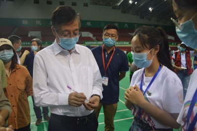 学校党委书记姜沛民、校长孙其信也来到学院迎新现场,询问迎新报道情况并与2020级新生、2020级班主任、志愿者们亲切交流,并将图章投入2020级新生“牧场”签到版中,用特别的方式,为小超人们送上祝福。学院党委书记郭晓旭也到场看望了迎新师生。
