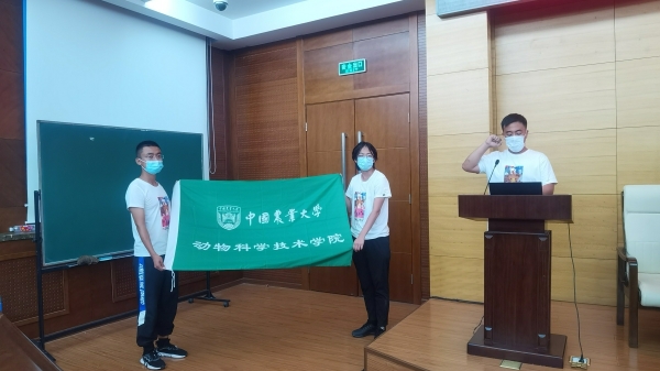 激昂的音乐声中,身着学院文化衫的2020级本科生逐一上台,接受成为动科人的庄重一刻,在亲切地问候交谈中,学院领导为同学们戴上象征着“加入动科大家庭、成为动科一份子”的院徽,也代表着作为茁壮成长的新生力量,同学们正式肩负起发扬动科精神、传承动科文化、服务现代畜牧业的光荣使命。