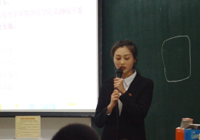 主席团选举正式开始,首先由筹委会监选组组长刘春兰宣读《动物科学技术学院第十七届研究生会执委会选举办法》,全体表决通过后,主席团候选人开始竞选演讲。