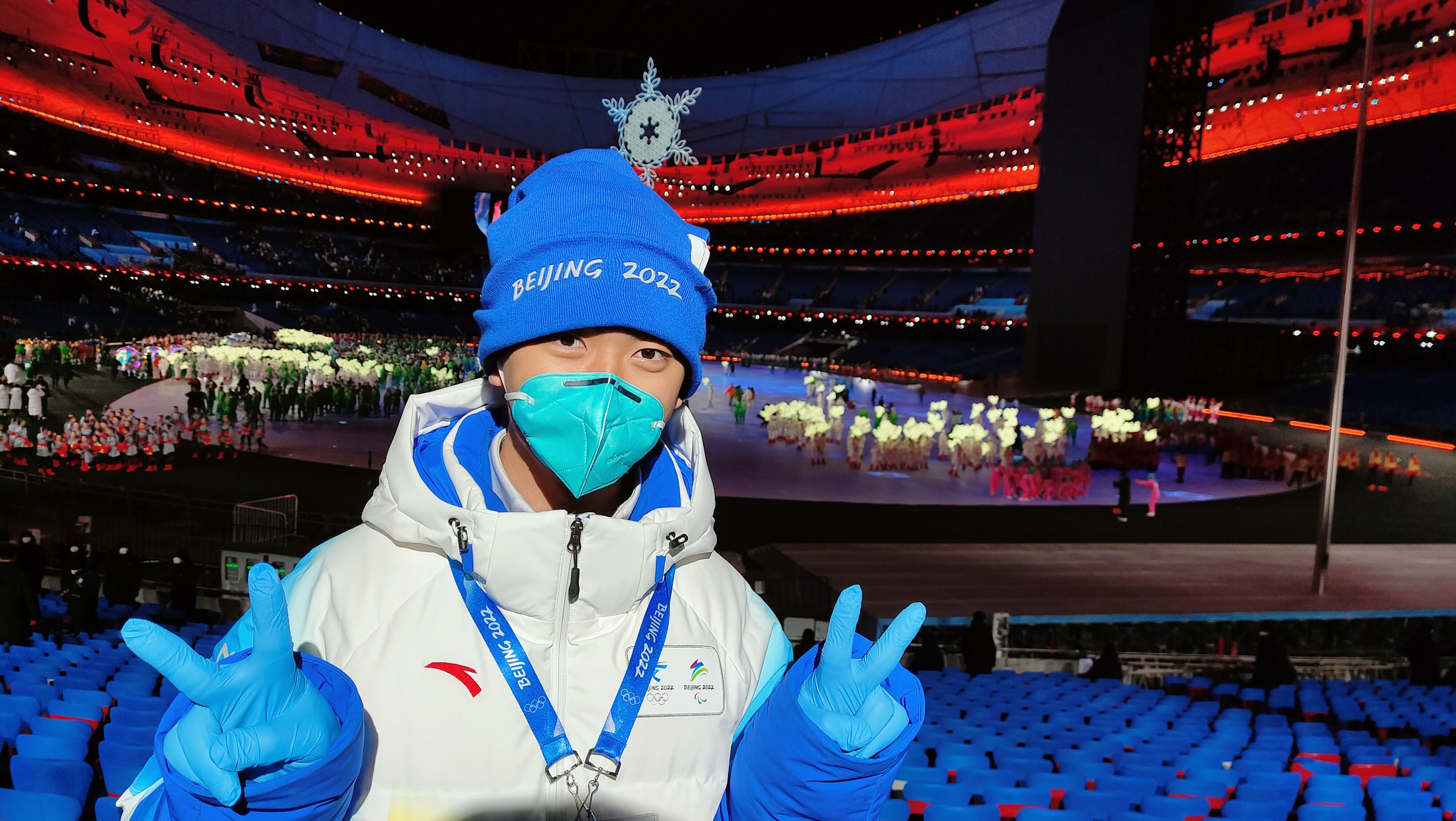 首个离开家过的春节,内心应当说是不平静的。由于家和场馆距离比较近,更是颇有种“咫尺天涯”的感觉。当然,这种不平静更多所包含的,则是对即将到来的开幕式的期待和对学校、学院师友的感谢。各位老师朋友的关心与驻地酒店的充分保障,让我心中的年味不减。在闭环内志愿服务过程中跨年,令我格外增强了与党和国家同频共振的感受,也更加深切地体会到身处历史现场的多重心境。我想,春节与冬奥的相遇不仅仅是因为日期上的相近,春节“辞旧迎新”的寓意和冬奥“一起向未来”的口号也是相呼应的。光荣在肩,使命在肩,我们“新鸟巢一代”志愿者必将度过一个不平凡的冬奥年。