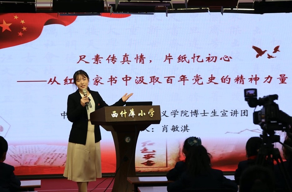 花木萌动,大地复苏。伴随着激情冬奥,满载着崭新的春色,2022年2月21日,西什库小学全体师生满怀希望与憧憬再次欢聚校园,隆重举行“一起向未来”——西什库小学2021—2022学年度第二学期开学典礼,中国人民大学博士生宣讲团讲师肖敏淇和楚润东受邀参加“开学第一课”活动,进行了主题为《尺素传真情,片纸忆初心——从红色家书中汲取百年党史的精神力量》主题宣讲,本次活动通过线下宣讲和线上直播的方式覆盖全校千余名学生。