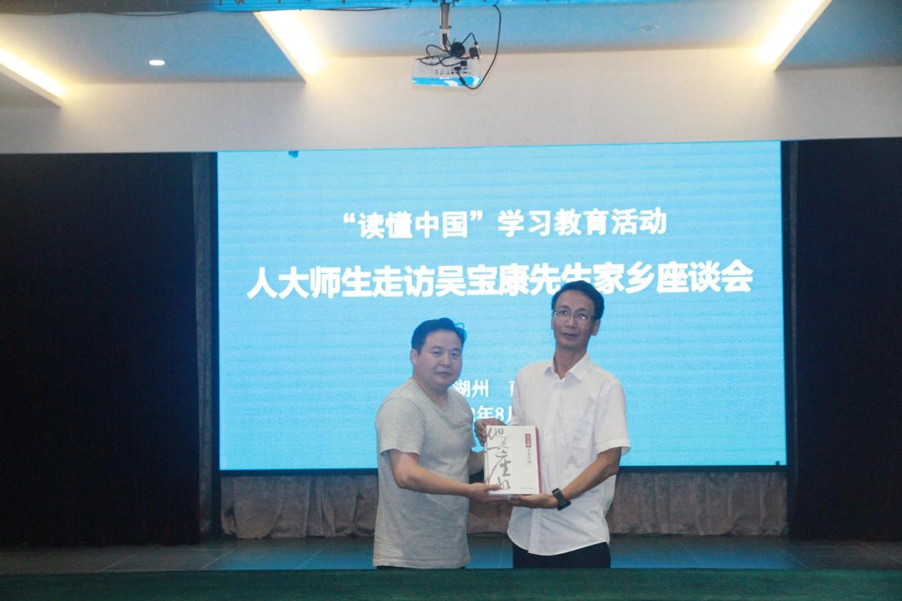 活动中,信息资源管理学院与南浔区档案馆召开了座谈会,举行书籍互赠仪式,师生代表和市区档案部门领导围绕此次“读懂中国”活动进行了热烈而充分的交流。区政府咨询委秘书长、区档案馆第一任馆长邵枫介绍了自2015年12月双方建立友好合作关系的渊源与发展,对新时期健全密切而长效的合作机制提出建设性意见。徐拥军教授等教师代表纷纷介绍了学院专业发展方向、档案价值开发、档案信息技术运用于城乡建设案例等情况,对南浔档案部门提出的基层档案工作“瓶颈”问题给予了相关意见建议。