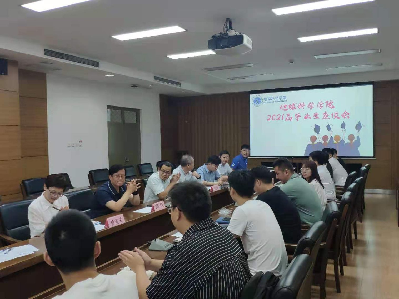 6月16日,2021届毕业生座谈会在地质楼204会议室召开。学院党委书记王贵文、各系教师代表、毕业班辅导员及2021届毕业生代表参加会议,座谈会由毕业班辅导员杨晟颢主持。