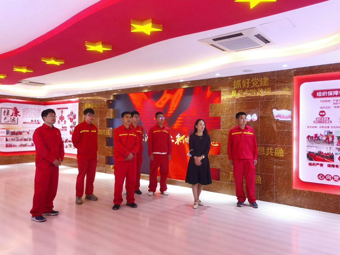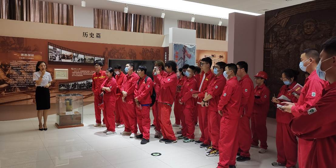 第三站来到中国石油“基层党建百面红旗单位”、天津市“工人先锋号”——大港油田第一采油厂第二作业区红旗展室进行参观学习。第一采油厂作业二区党支部积极践行“奉献石油、创造和谐”的企业宗旨,大力弘扬石油精神和大庆精神铁人精神,融合创新、探索打造了“红旗不倒、永葆鲜艳”的特色红旗文化,并创建了特色党建阵地——“红旗展室”。在讲解员的带领下,地学院一行师生参观了红旗展室,学习了作业二区的红旗文化与先进基层党建经验。