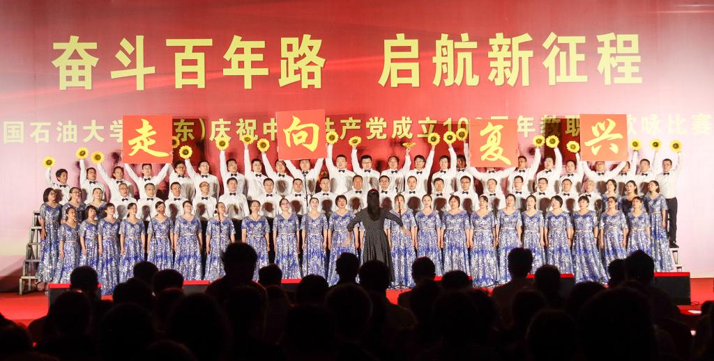 全校21支合唱队,2000多名教职工,以嘹亮的歌声献礼党的百年华诞。经过紧张激烈的角逐,最终离退处、石油工程学院、校机关、教育发展中心、储运与建筑工程学院、地球科学与技术学院和新能源学院获得一等奖;文法学院、校属企业、理学院、化学工程学院、控制科学与工程学院、图书馆、计算机科学与技术学院、海洋与空间信息学院、机电工程学院、外国语学院、经济管理学院、材料科学与工程学院、马克思主义学院和体育教学部获得二等奖。学校党委副书记万云波,学校党史学习教育领导小组办公室成员单位负责人观看比赛并为获奖单位颁奖。