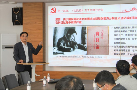会议伊始,学院党委副书记毛剑讲授党课《力戒空谈,多办实事》,毛剑从马克思主义著作《实践论》发表的时代背景、理论要点、坚持和运用《实践论》的科学世界观和方法论三个方面,向与会人员阐述了《实践论》在高校学生工作中的具有重要的指导意义。报告指出,学生工作以学生为对象,具有极强的现场性与实践性。在日常工作中,坚持“进宿舍、进课堂、进餐厅、进活动、进网络”是贴近学生、深入学生的主渠道,是开展学生教育、管理、服务工作的主阵地,是做好辅导员工作的客观需要和必然要求。学院将持续实施“实践育人”全过程管理,把学风建设、创新创业、志愿服务作为实践育人的三大抓手,不断增强“实践树德、实践增智、实践健体、实践育美、实践强劳”的重要作用。