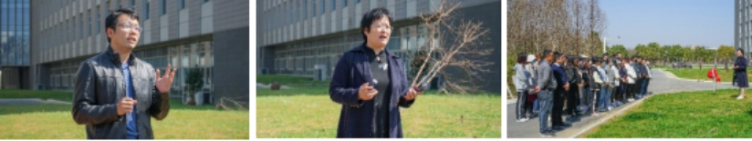 活动伊始,张杨彬书记回顾江宁校区的发展建设历程,他指出,植树造林不仅美化了校园环境,更是践行“绿水青山就是金山银山”生态理念的落地举措,同时为碳达峰贡献力量。随后,张仕英书记致辞,张书记从植树节的由来和发展娓娓道来,她强调,本次植树活动有效推进了绿色校园建设与生态环境保护,同时也将学院劳动教育理念落在实处,她希望青年党团骨干要牢记习近平总书记对大学生德智体美劳全面发展的谆谆教导与殷切期盼,尊重劳动、崇尚劳动、热爱劳动,争做担当有为的药学生。基建后勤处江海老师从工具使用、挖土技巧、种植细节以及树苗培植朝向等方面向师生作具体指导。