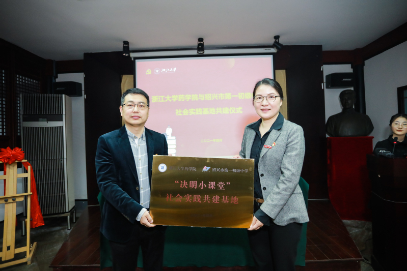 大手拉小手,不单在课堂中,也延伸到课堂外。当天,药学院研究生党支部与绍兴市第一初级中学结对,药学院的同学们向初中生们赠送科普类读物。
