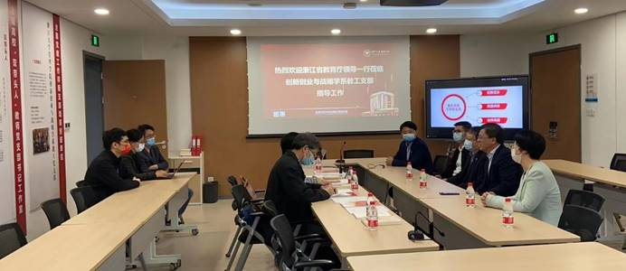 2022年4月15日下午,浙江省教育厅统战室一级调研员朱振岳一行莅临浙江大学管理学院创新创业与战略学系教工党支部,实地考察首批全省党建样板支部终期评定验收工作。管理学院党委书记朱原、副书记潘健、学院党政办张国芳陪同考察,创新系支部书记魏江教授、副书记郑刚教授及创新系支部全体委员参加验收汇报会。