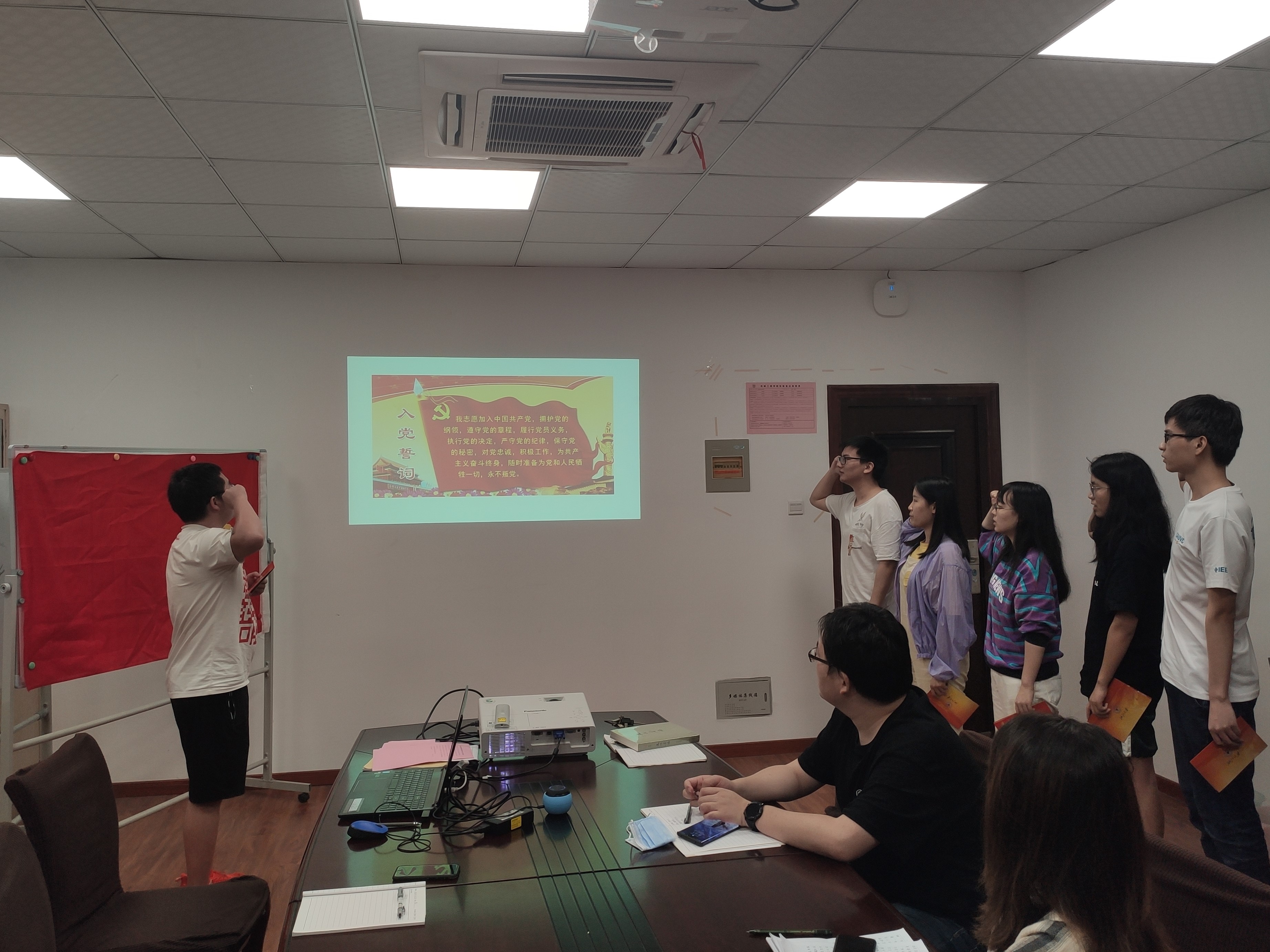 会议后半段,进行了党员政治生日三集中活动,廖诗睿,潘胜武,李慧敏,和颖凌,李寿贤和王子天共6名支部党员,接受了由向佳欣同志代表党支部送上的政治生日贺卡和党建书籍,并且在党旗下重温了入党誓词。