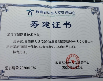 “1+X”证书公共培训基地建设有序展开,技能证书考核点已充分发挥示范引领作用,教学与培训育训有机结合,促进书课证融通;社会层面结合实际需求服务企业开展技能培训和认证工作,作为教育部智能制造领域中外人文交流人才培养基地筹建单位(图3),为温州及长三角地区高层次技术技能型人才培养和经济社会发展做出了应有贡献。