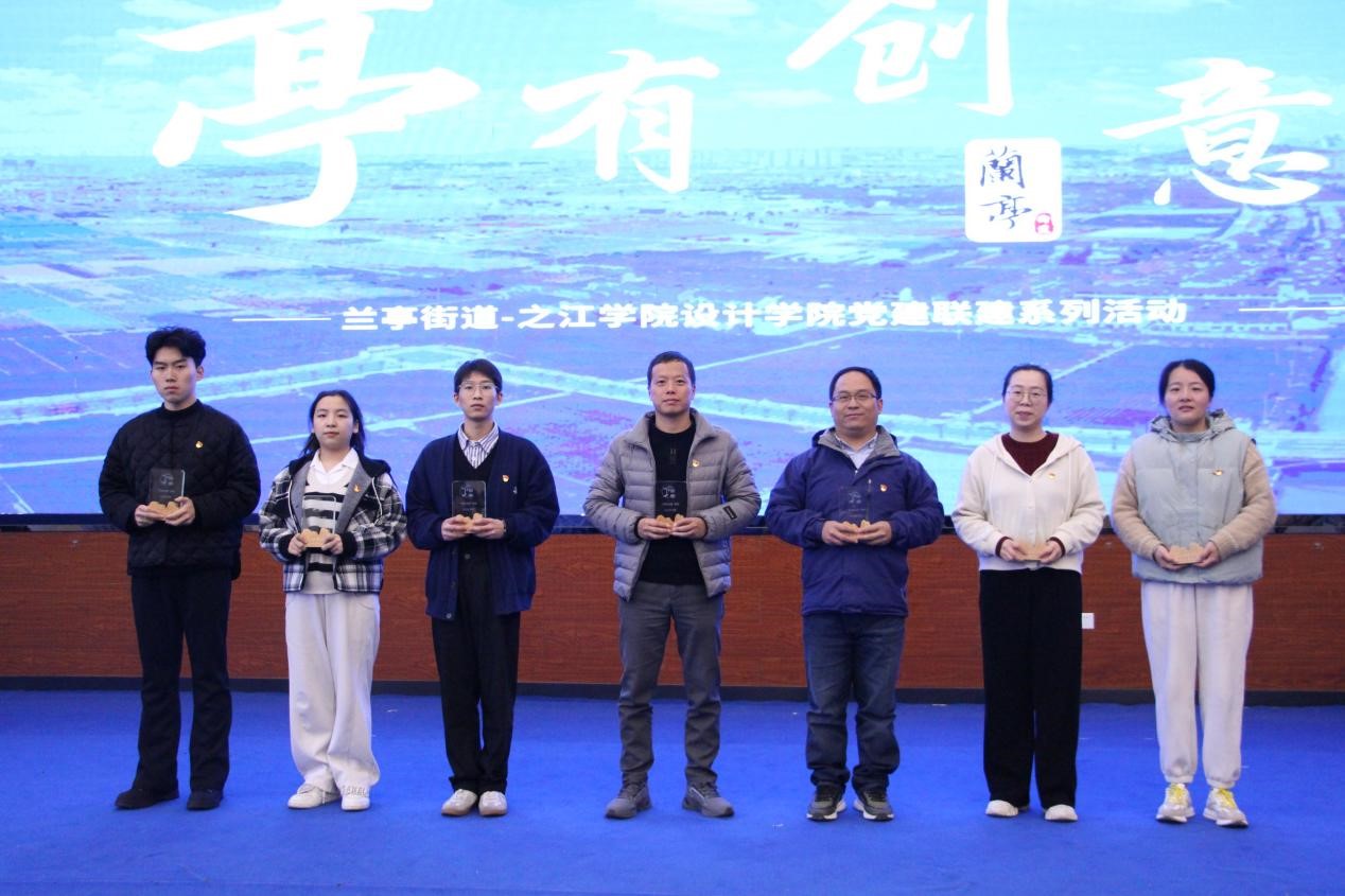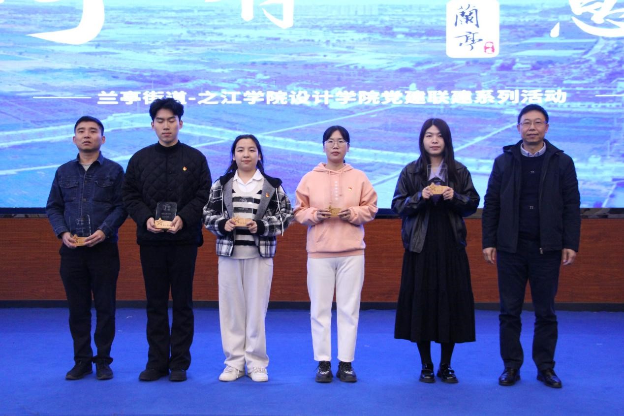 同时,设计学院党总支书记表示希望通过共富指导员团队载体,让设计课堂开进田间,把设计成果留在社会,为兴村共富校地联动,为乡村建设贡献设计服务。经评选,最终选出古筑村地图设计、紫洪山村印章设计、花街村杨明园地图美化设计等3项最具创意奖,桃源村logo设计、谢家坞村海报设计等6项最受欢迎奖和11项风采展示奖。