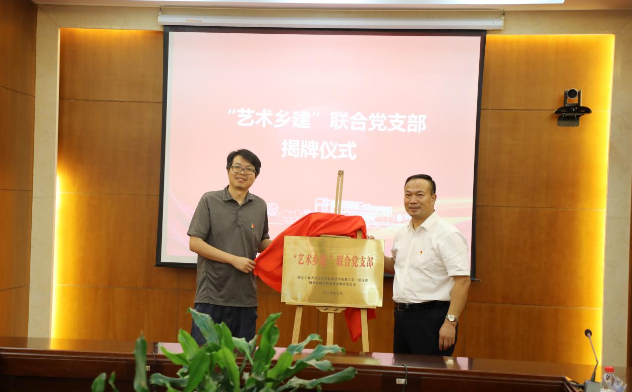 仪式上,设计学院教工第一党支部与柯岩街道叶家堰居党总支共建“艺术乡建”联合党支部,并进行共建协议签约和揭牌仪式。