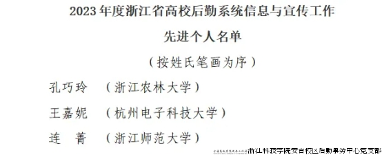 严梦婷荣获2023年度浙江省高校后勤系统信息与宣传工作先进个人