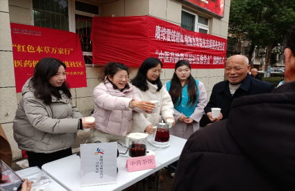 在其它服务工作台前,李兆慧、沈湛云、陈云、张玥、汪周起等党员骨干教师也纷纷用他们的专业知识技能、热心服务,为社区居民送上了可看、可询、可听、可饮、可尝的中药文化大餐。居民们品茶交流,脸上洋溢着笑容,感受到社会的关爱与温暖。