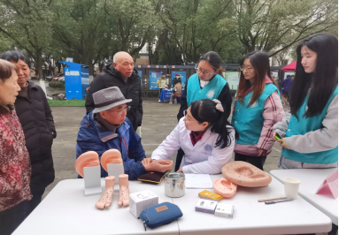 中医耳穴疗法能缓解失眠、高血压、颈椎病等病症,于是学院党员教师季超老师面前的“接诊台”排出了长长的队伍,她的耐心、仔细和专业的诊断检查,使得很多周边社区居民也慕名而来。