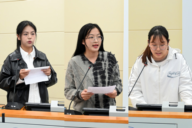 首先由团学志各部门大三负责人进行述职汇报。分团委学生副书记、组织部部长、各中心主任、学生会主席团成员以及志愿者协会会长,分别围绕各自的部门工作,从工作内容、工作成效、经验总结、未来规划等方面进行述职,全面总结了上一学期团学志的工作。他们表示将汲取过去工作中的经验与教训,团结带领各部门更好地推动2024年各项工作的开展,不断提升工作水平。