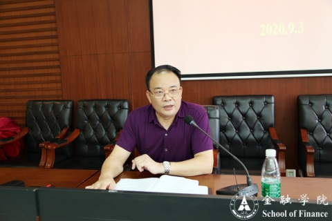 9月3日下午2:00,金融学院在文泉楼南313会议室召开新学期教职工大会,传达学校第四次党代会和2020年秋季工作会议精神,部署新学期学院各项工作。学院党政领导出席,全体教职工参加,院党委书记江克宁主持。