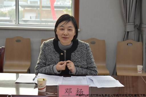 第二阶段,专题研讨交流会在武汉市第三寄宿中学5号楼4楼会议室举行,邓杨主持会议,她向各位参会嘉宾表示衷心感谢,详细介绍了学校“由党创办、建校为党、成长为国、发展为人民”的红色基因、财经政法深度融通的办学特色和“融通性、创新型和开放式”的人才培养特色,介绍了学院发展历程、党建特色、教研部设置、思政课建设等情况,她强调,学校和学院在思想政治教育和马克思主义理论教育方面有着悠久历史、强大学科优势和完善的硕博培养体系,将思政课建设与党建工作深度融合、基层教研活动与支部活动有机融合。