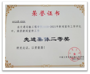 支部获交通院2020-2021年新闻宣传工作先进集体二等奖