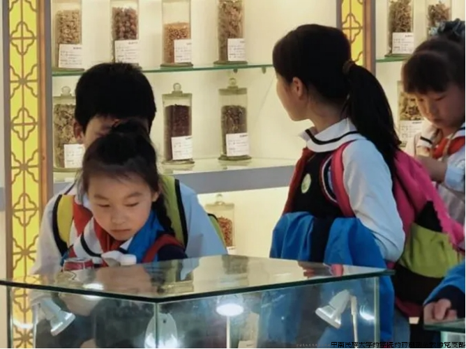 中南民族大学药学院中国传统医药标本馆,每年投入4万元,由药剂系党员教师李小军副教授牵头建设,百草社同学负责日常维护和讲解。2024年以来,标本馆除接待校内师生参观访问外,已接待校外合作企事业单位、兄弟院校和中小学参观近千人次。