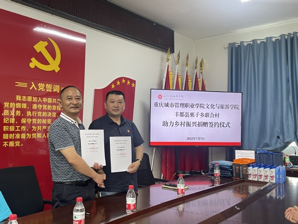 为切实充分发挥文化与旅游学院党建优势和专业特色,进一步探索创新党建引领赋能乡村振兴的有效路径,7月7日,文化与旅游学院党总支书记郑兵带队前往丰都县双路镇安宁场村、丰都县栗子乡联合村举行校地党建结对、大学生社会实践与志愿服务基地共建签约仪式,丰都县双路镇安宁场村党总支副书记陈华林、驻村第一书记黄云峰,丰都县栗子乡联合村支部书记冉荣松、驻村第一书记殷开明等出席签约仪式。
