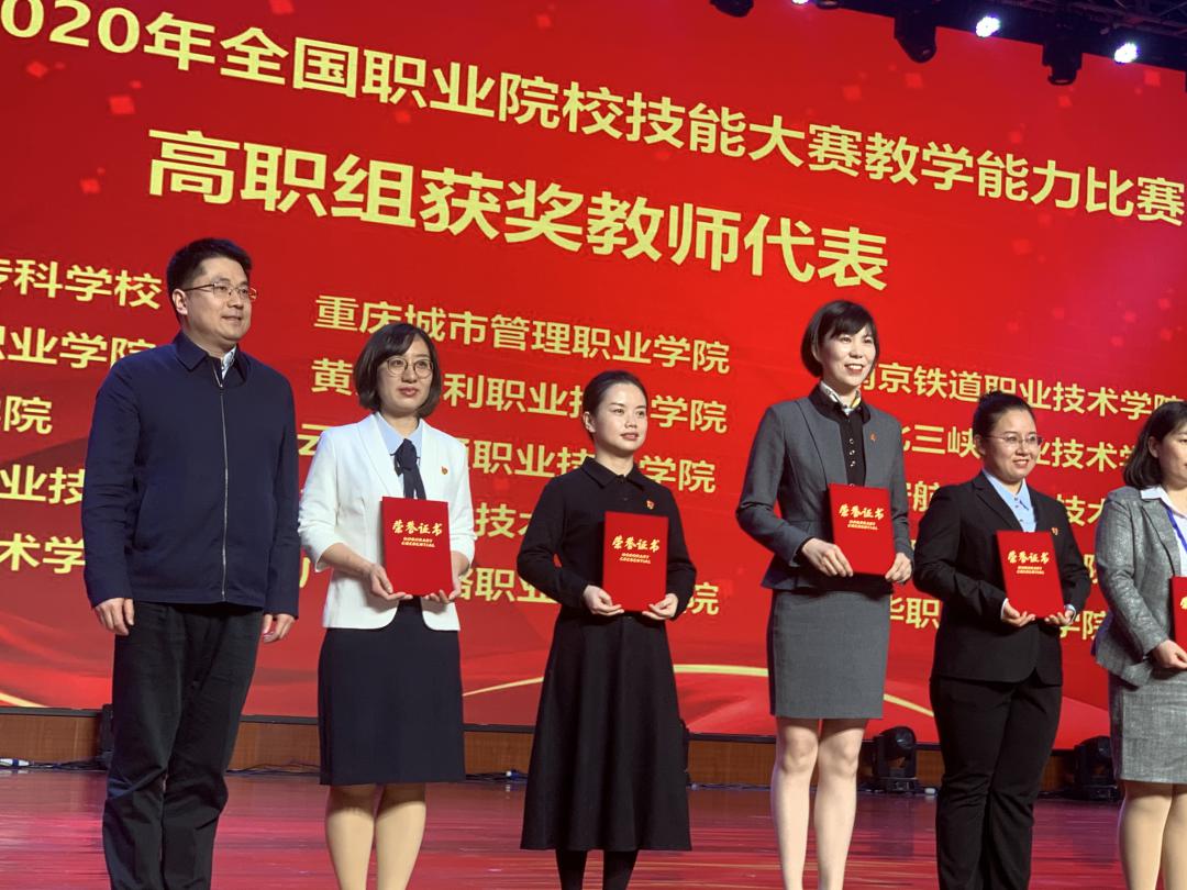 12月10-12日,2020年全国职业院校技能大赛教学能力比赛决赛在湖南省株洲市湖南化工职业技术学院举行。我院教师严红、蒋弦、张燕霞、马璨组成的参赛团队,荣获高职组公共基础课程组一等奖。学校作为高职组代表上台领奖。
