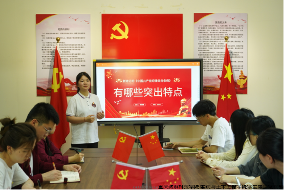 其次,魏姗姗同志强调了《中国共产党纪律处分条例》的修订背景、意义以及学习《条例》的重要性。修订《条例》的主要内容体现在六项纪律,该《条例》不仅为惩治违纪违法行为提供了定性量纪标准,也为广大党员提供了科学、合理的行为规范,使党员能够明确是非界限、清楚自律标准、守住行为底线。