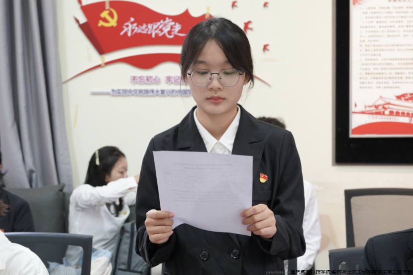 紧接着,支部书记宗娜代表代表上届支委会作工作汇报。报告详细回顾2024年建筑与土木工程学院学生第二支党支部在上级党组织的正确领导下在理论学习、组织建设、党员活动、服务群众等方面的成就。同时,反思和指出支部工作中开展思想教育存在方法和形式等方面的薄弱环节,资料整理归档还不够细致规范等问题并对新一届支部委员工作的开展提出建议。