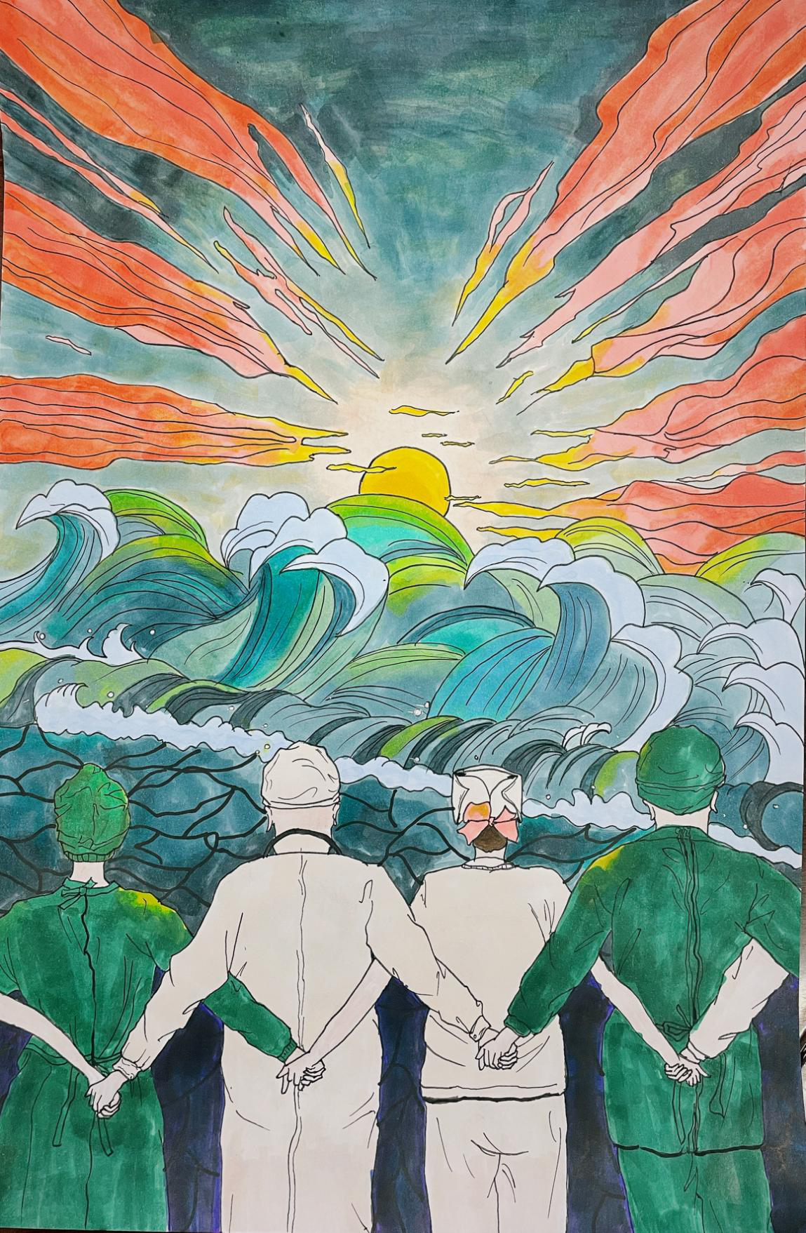 本次绘画比赛面向建管系19、20级全体学生征集作品,共征得作品40余幅。同学们用自己的画笔致敬英雄,记录美好,本次作品内容丰富,色彩感染力强,富有真情实感,传递着力量和温暖。通过评选获得一等奖的有:王茜丹、聂士博、李春清;获得二等奖的有:廖曾艳、魏琳琴、田蕊;获得三等奖的有:舒健思、刘佳、吴小龙等同学。