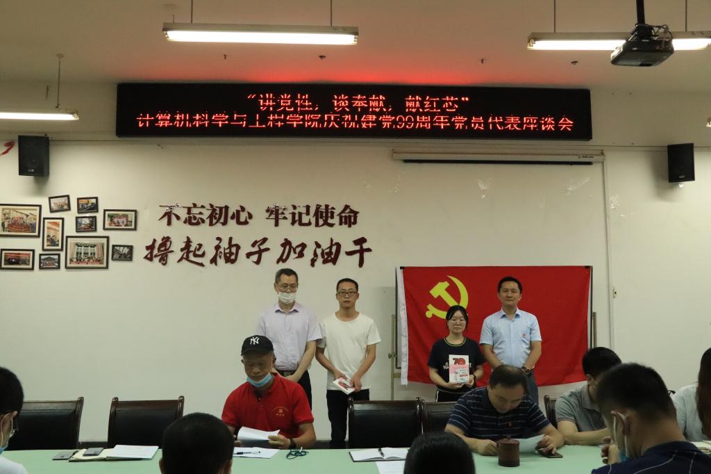 7月1日下午,计算机学院党员代表座谈会以“讲党性,谈奉献,献红芯”为主题,在党员活动室C208进行,学院全体党委委员、各党支部党员代表、民主党派代表共20余名师生参加了此次座谈会。师生党员们围绕强化党建与思想政治引领、新冠疫情常态化防控、高水平新工科大学建设、三全育人等方面内容进行了交流发言,大家畅谈入党的初心,对党的热爱,表达对建党99周年的真挚祝福和对学校建校80周年的深厚情感。交流结束后,学院党政领导分别给慰问的困难党员和六月过“政治生日”的党员们赠送了礼品。接着,学院党委书记蹇福阔上了主题为“一颗红芯永向党,再创佳绩铸辉煌”的微党课。蹇书记谈到,中国共产党辉煌九十九载,从南湖红船到承载着中国人民伟大梦想的中华巨轮,百年恰是风华正茂。“大学之道,在明明德,在亲民,在止于至善。”一个党员就是一面旗帜,作为共产党员,只有砥砺复兴之志,永葆赤子之心,高扬奋斗精神,才能让中国共产党永远年轻。最后,全体党员在蹇书记的带领下一起重温了入党誓词,2020上半年新发展的党员们也一起进行了入党宣誓。