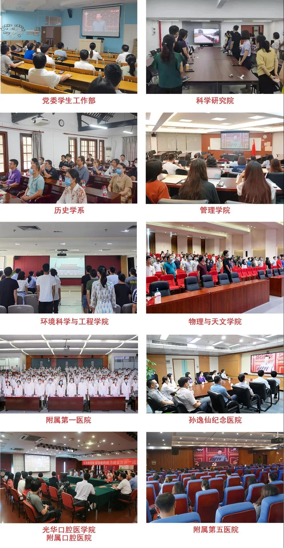 本次活动分别在广州校区北校园、东校园,珠海校区和深圳校区设置分会场,各校区组织中层党员领导干部及院系师生党员代表集中收看庆祝大会。