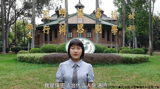 此外,支部同志积极响应保密管理办公室关于开展“寻找最美保密法治代言人”微视频征集评选活动的号召,录制宣传保密法微视频。大家围绕此次保密法修订的重点、亮点,立足专业知识,结合日常学习和生活中的所思所感,用真挚的情感和生动的语言讲述了自身对保密法修订的认知和理解,展现了新时代保密学子昂扬向上的精神风貌和锐意进取的青春风采