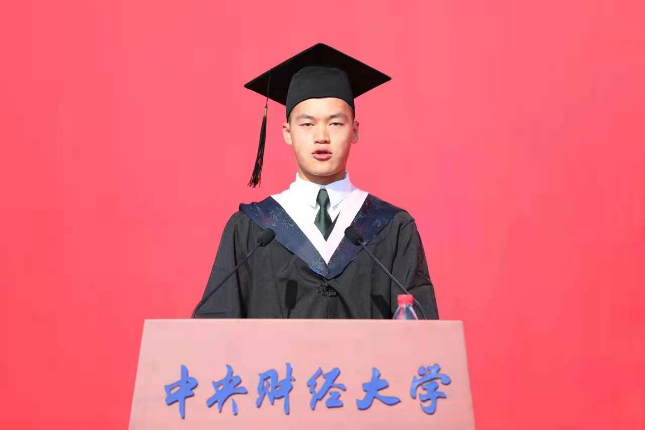 来自会计学院的硕士研究生毕业生罗雨作为研究生毕业生代表发言。她表达了对母校和老师的崇高敬意与衷心感谢,谈起“中财人”的担当,她希望毕业的同学们能孜孜不倦,求知探索;矢志不渝,志存高远;与国同行,勇担重任;不惧风雨,敢为人先。以青春之我,奋斗之我,相遇未来旅途。