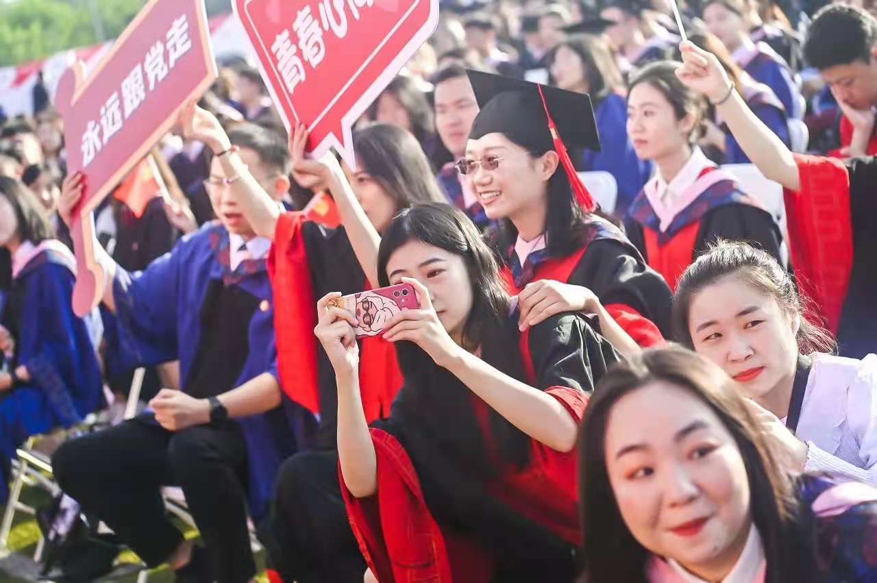 他表示,这是一场久违的毕业典礼,去年的“云上”毕业典礼至今难忘,今天我们终于能够面对面畅叙师生情谊。这是一场团圆的毕业典礼,参加典礼的不仅有2021届毕业生,还有2020届毕业生,大家在美好的日子里相聚是学校的大团圆。这是一场意义非凡的毕业典礼,同学们毕业之时恰逢中国共产党百年华诞,举国欢庆,万众欢腾。百年大党立志千秋伟业,风华正茂;同学们欲展鲲鹏之志,整装待发。
