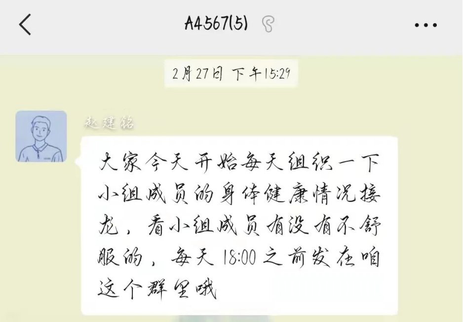 将胸膛坚定挺起,管理团队万无一失完成任务。作为驻地志愿者卫生防疫小组长,他严守安全防疫底线,全力做好志愿者每日健康监测与核酸检测,做好“螺丝钉”,当好“保障员”,将防疫安全记在心。他带领驻地志愿者骨干,组织多次志愿者岗前培训和中期考核,组织志愿者开展防护服穿脱培训;“每日健康申报”、“每日核酸检测”、“公共区一定佩戴N95口罩”……总有他的叮咛和督促。他细致细心,尽职尽责尽心保障“暖心大白”们的防疫安全。