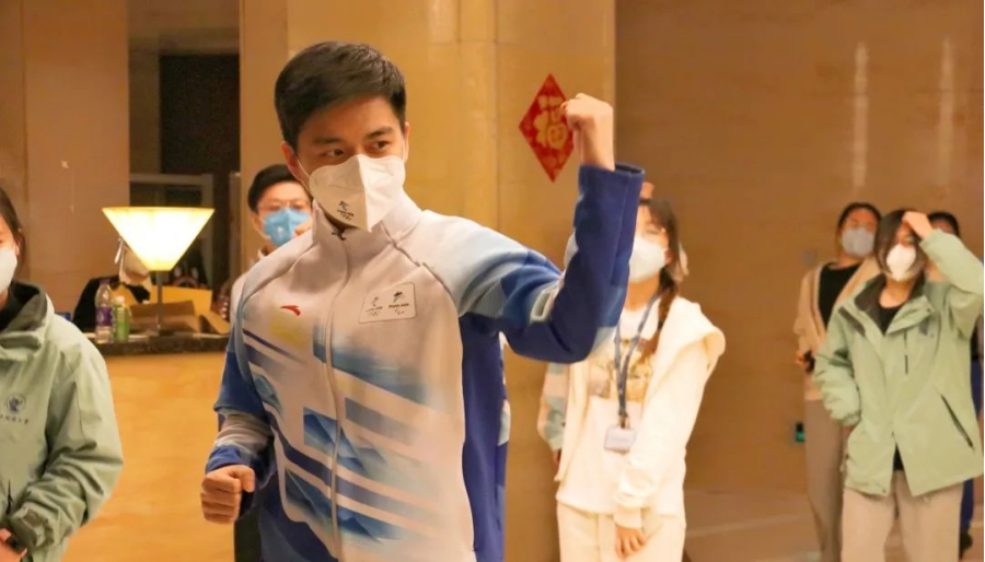 赵建铭督促志愿者完成核酸检测,做好志愿者的“大哥哥”,用微笑传递温暖,将笑容灿烂绽放,向志愿者传递满满正能量。他是志愿一线的“大白”,也是志愿者们口中的“大学长”,在驻地组织丰富的活动,成为志愿者中的朋辈知心人,广场舞活动、志愿者演讲比赛、武术活动······都有他的活跃的身影;他是志愿者眼里的“建铭哥”,更是驻地志愿者的“小太阳”,暖心又亲切,带领一片片“小雪花”们洋溢青春的脸庞,成为一道道温暖冬奥的“微光”。