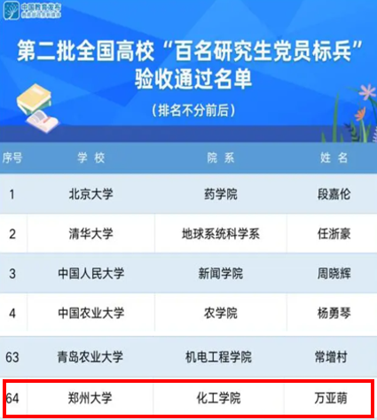 万亚萌荣获全国高校“百名研究生党员标兵”