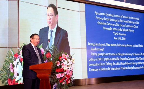 教育部中外人文交流中心副主任杨晓春在致辞中表示,党和政府一贯高度重视中外人文交流,习近平总书记提出共建“一带一路”重大倡议和构建人类命运共同体的思想,得到了国际社会高度评价和广泛响应。此次亚吉铁路电力机车司机培训,是郑州铁路职业技术学院落实教育部“一带一路”教育行动计划的生动实践,也是一次国际交往中的人文交流。他就建设轨道交通行业中外人文交流研究院提出三点意见。一是增强和发挥好学校服务社会的功能。深化校企合作,发挥智库作用,协同企业开展好当地的人文交流和人才培养工作,夯实中外合作的社会民意基础。二是促进学校学科和校园文化建设。以立德树人为根本任务,以人文交流理念为指导,做强做实学校人文社会学科建设,丰富校园文化的形式和内涵,促进中外学生的全面发展。三是促进学校进一步对外开放。与企业协同走出去,把企业的先进技术、先进产品转化为学校相应的教学资源,加强与企业所在国学校的交流与合作,助力学校发展和“双高”建设。
