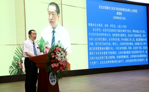 教师代表薛晋秋在发言中表示,希望学员们以这次学习培训为新的起点,返回亚吉铁路后继续强化安全意识、纪律意识和服从意识,早日成为一名技术娴熟的电力机车司机,为亚吉铁路的发展做出更大的贡献。