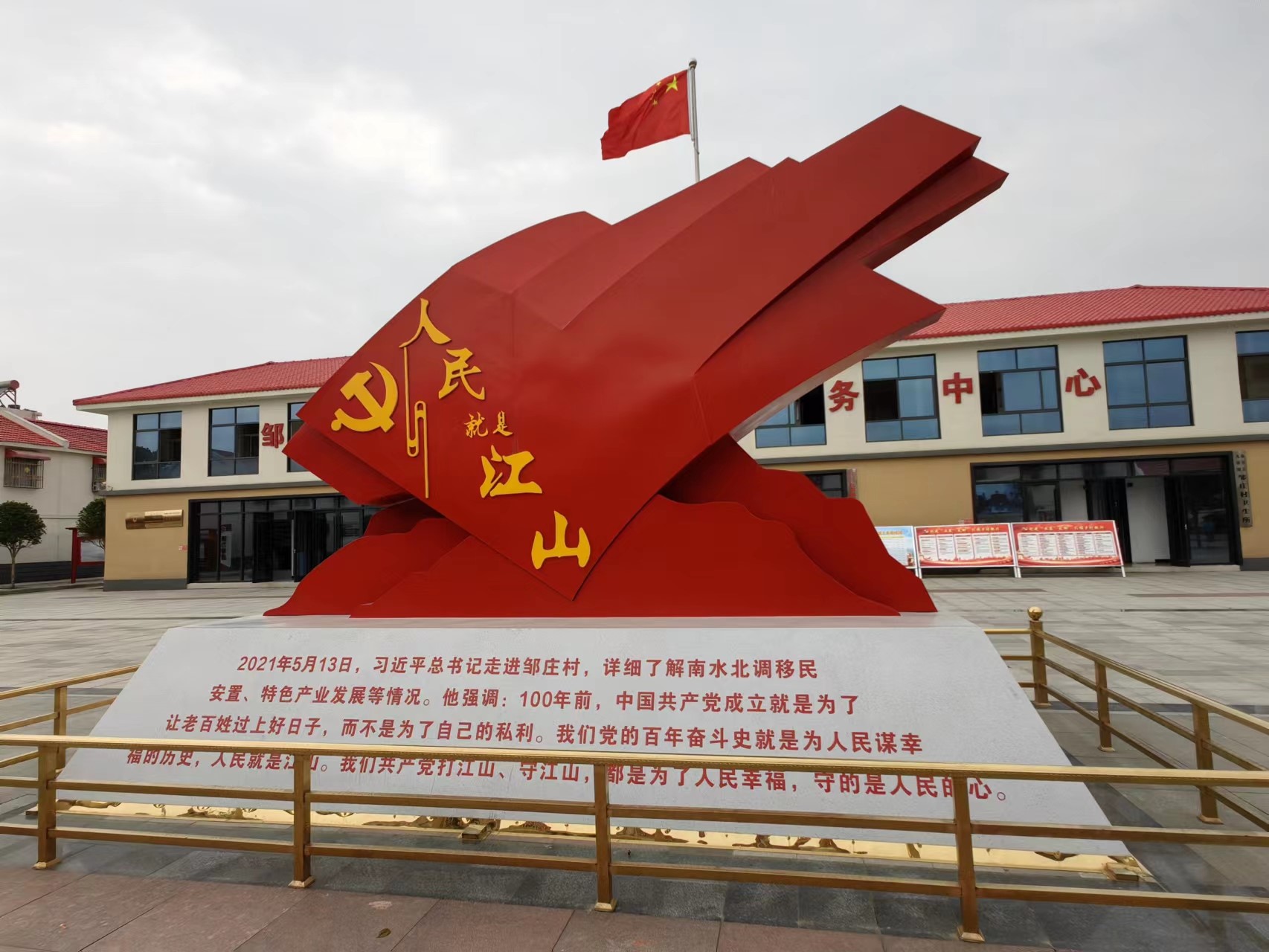 初到邹庄村党群服务中心广场,广场大屏幕上正播放着《新闻联播》相关影像。2021年5月13日,习近平总书记来到河南省淅川县考察,听取南水北调中线工程建设管理运行和水源地生态保护等情况介绍,关心关切移民生活。习近平总书记强调,“要从守护生命线的政治高度,切实维护南水北调工程安全、供水安全、水质安全”,“守好这一库碧水”。同时,他明确提出,“要继续做好移民安置后续帮扶工作”,祝愿乡亲们日子越来越兴旺,芝麻开花节节高。